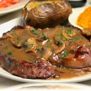 - Sal y pimienta a gusto.PreparaciónComo primer paso lavamos bien los medallones y dejamos escurrir el agua, sazonamos con sal y pimienta y reservamos.Pre-calentamos el horno a 180°C. Luego en una sartén grande calentamos las cucharadas de aceite, introducimos los medallones y sofreímos por 5 minutos cada lado, después de este tiempo retiramos la carne en un recipiente de horno y recubrimos con papel aluminio.Llevamos el recipiente con los medallones al horno y dejamos hornear por 12 minutos. Retiramos y reservamos.En la misma sartén freímos los champiñones por 6 minutos, pasado ese tiempo agregamos el caldo de costilla diluido en agua, el vino tinto mas el tomillo, quitamos unas cucharadas de la mezcla para diluirla con la fécula de maíz, cocinamos a fuego bajo por 10 minutos.Ahora añadimos la fécula de maíz diluida, cocinamos por 4 minutos.