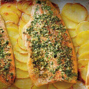 SALMON EN SALSA DE QUESO TOMATE Y ESPINACAS
